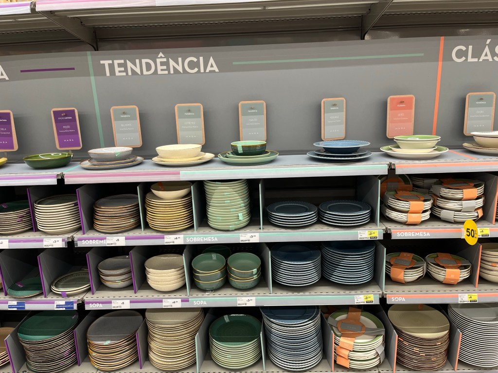 The store also has home goods too just like Target. This is cute, all these sets of dishes are named after Portugal cities. Guess which one I would buy to furnish my proposed new apartment?